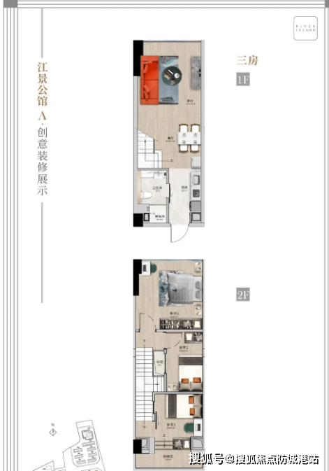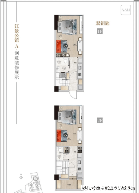 江景公馆-A户型(约49㎡),采用LOFT双层设计,空间格局周正,采光通风俱佳,可俯瞰一线江景。该户型支持多种创意装修方案,可打造为挑空二房、双钥匙户型或三房,灵活适配不同居住需求。挑空二房设计保留双层通透感,客厅挑高营造开阔空间氛围,适合小家庭自住;双钥匙户型则可实现分层独立使用,一层自住、一层出租,或双层均出租,实现双重收益;三房设计则通过合理划分空间,满足多人口家庭的居住需求,每一处空间都得到充分利用,无浪费面积。
