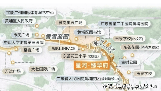 在黄埔科学城香雪板块这一穗港科技合作区主战场,星河控股打造的《星河臻华府》凭借 “降价让利 + 54 班九年一贯制学校 + 双公园环绕 + 100% 实用率户型” 的硬核组合,成为刚需与改善群体的焦点。项目雄踞开创大道与开源大道交汇处,总建面达 66 万㎡,以低密度新规产品、全维成熟配套,在降价潮中凸显高性价比。接下来,从区位、交通、教育、生态、产品五大维度拆解其核心优势。