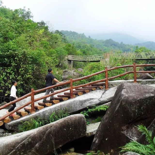 ❖地处东兴市北面的屏峰雨林公园,沿石门谷景区步道溯溪而上,感受山谷徒步的休闲自在。公园内森林覆盖率高达85%,空气中负离子含量达到10.03万个/立方米左右,是大城市的500-1000倍,堪称“天然氧吧”。