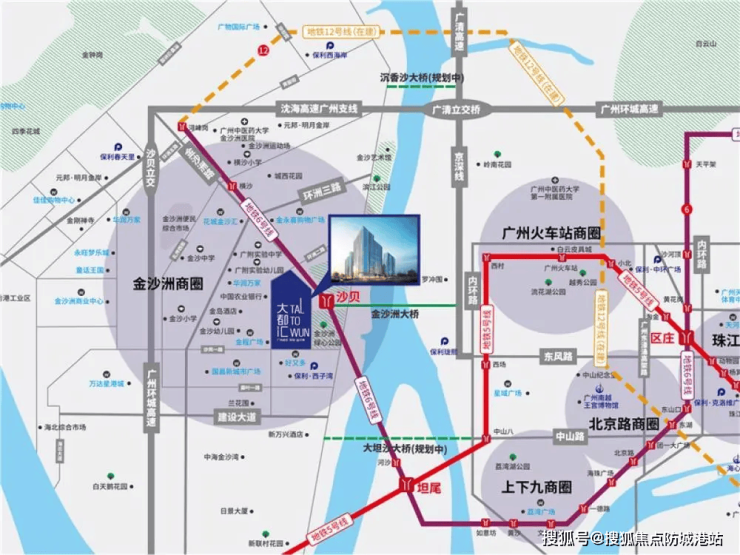 保利金沙大都汇正位于这一黄金交汇点——白云区金沙洲路与环洲三路交汇处,距离广州市中心(以珠江新城为参照)直线距离不足10公里,车程约20分钟。更关键的是,项目所处片区已被纳入《广州市国土空间总体规划(2021-2035年)》重点发展单元,未来将打造为“产城融合、生态宜居”的现代化新城。