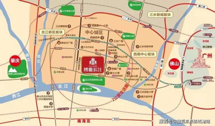 1. 黄金区位:三水城市中轴上的稀缺江岸大盘