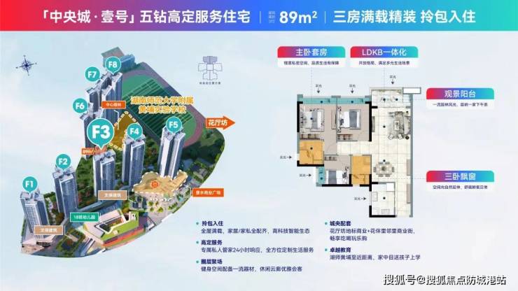 项目最大的优势就是配建144班公立九年制湖师黄埔实验学校,湖南师范大学附属黄埔实验学校,是湖南师范大学目前在粤港澳大湾区唯一一所与政府合作开办的九年一贯制公立学校,是一所全面传承岳麓文脉、秉承湖南师大附中办学理念的高起点、高品位、现代化的学校。 (湖南师范大学附属黄埔实验学校占地约74494㎡,规划144班九年一贯制,其中小学96个班,初中48个班。 )