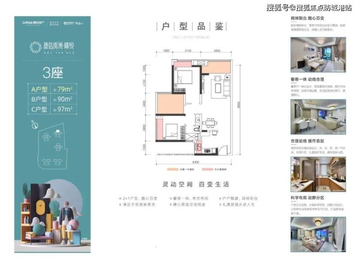 79㎡得3房,片区臻罕高得房率三房,轻松实现三代同堂