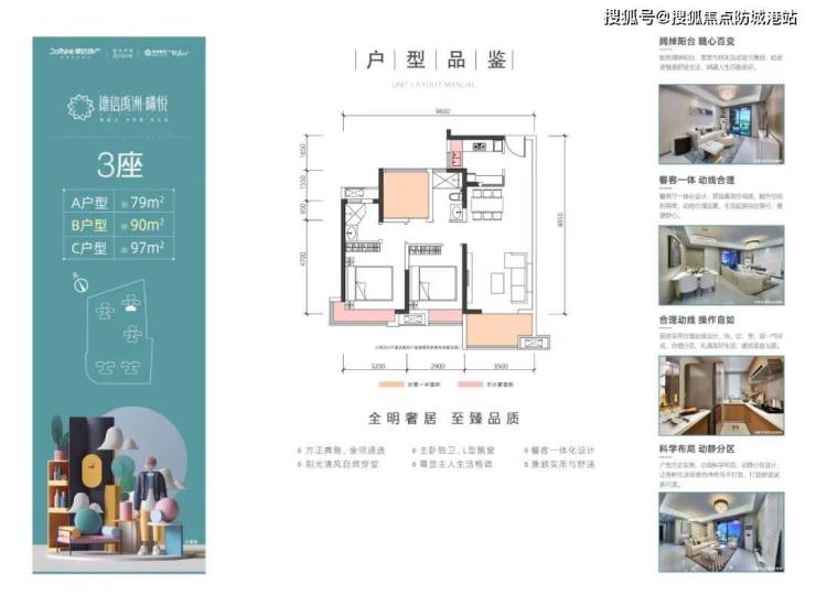 面积:约79㎡三房两厅、约90㎡三房两厅两卫、约97㎡四房两厅两卫