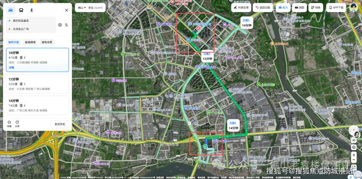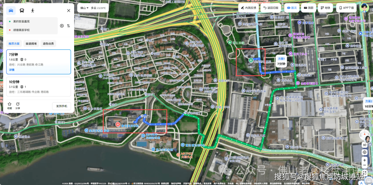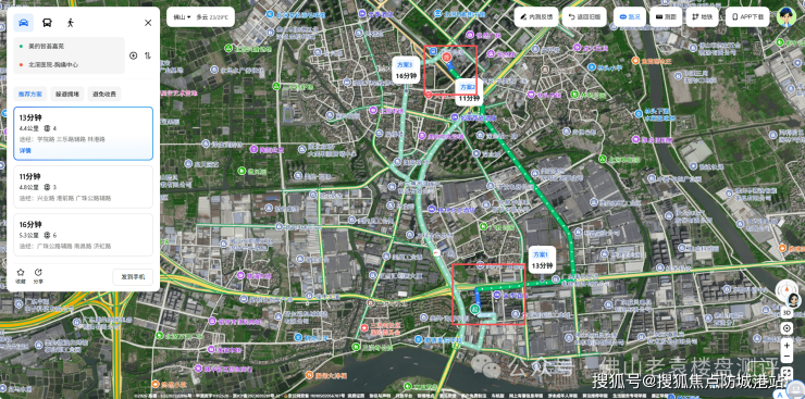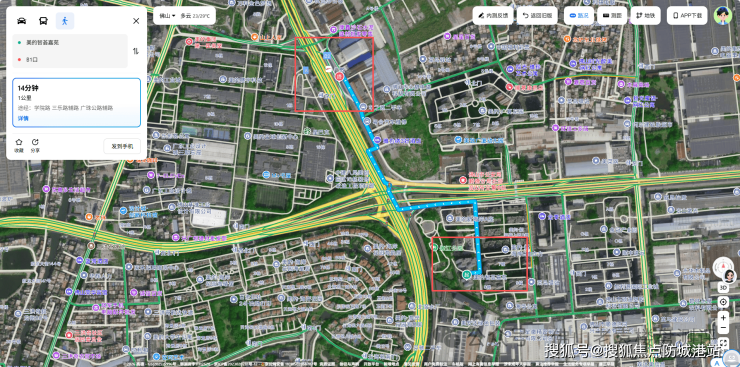 项目距离已通车的佛山地铁3号线广教站直线距离约1000米,步行仅需12-14分钟。从广教站出发,1站即可到达北滘公园站,在此可换乘广州地铁7号线,8站直达广州南站。这一轨道交通网络,使得从项目出发,仅需不到1小时即可抵达广州南站,快速通达广州核心区域。虽然目前尚无步行可达的广州地铁线路,但现有的轨道交通组合已经极大地提升了通勤效率。
