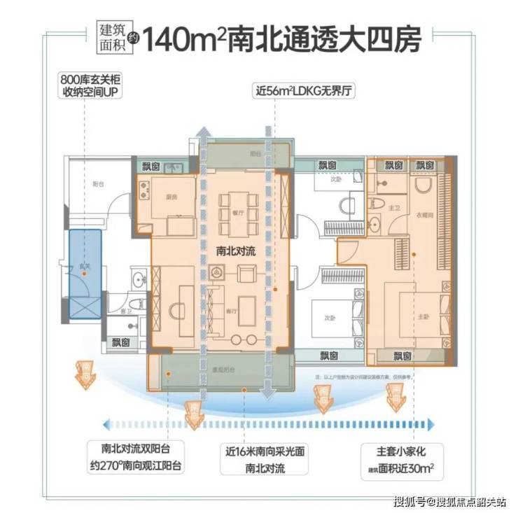 产品价值:建面约96㎡三房户型采用“LDKB一体化”设计,客厅、餐厅、厨房与阳台连通,形成约30㎡超大公共空间;主卧配备270°转角飘窗,视野开阔;双卫设计满足三代同堂需求。建面约143㎡五房户型更打造“双主套+南北双阳台”格局,南向面宽达14.2米,采光面超20㎡,堪称片区“改善天花板”。