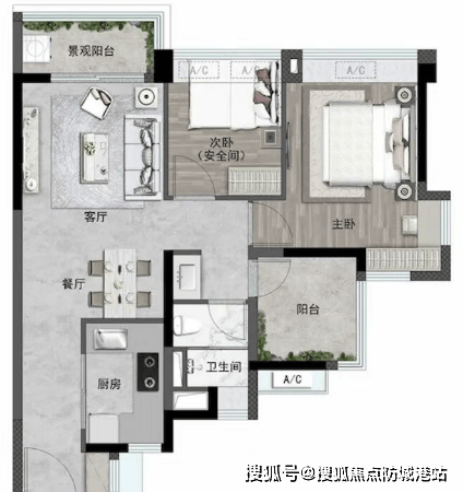 主力在售的D区产品集中在79–133㎡区间,其中建面约105㎡的三房横厅户型特别值得关注:客厅面宽近6米,LDK一体化布局让公共区域通透敞亮;主卧面宽约4米,带双飘窗;全屋8处飘窗均为赠送面积,实用率高达98%。即便是最小的72㎡两房,也通过玄关、公卫、卧室多处飘窗设计,把空间利用率拉满。所有户型均为正南或正北朝向,通风采光条件均衡。