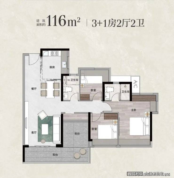 我们以99平方米的户型为例。在传统设计中,这个面积通常只能做到紧凑的三房配置,每个房间的尺寸都比较局促。但在颐府的方案中,通过优化公共空间和阳台设计,实现了南向约12米的超大采光面。这意味着客厅、卧室等主要功能区的进深更大,通风采光条件显著改善。