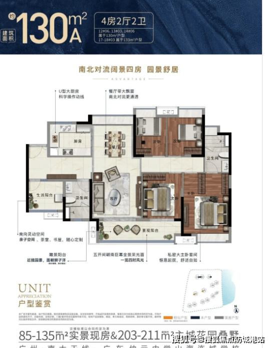 130㎡户型,总价250w - 280w,4房2厅2卫,南北朝向。南北对流,通风采光好,整体方正空间利用率高,动静分区明确。U型厨房符合操作习惯,生活阳台拓展家务空间。四房设计,主卧带套间保证私密性,五开间朝南观景绝佳,面朝狮子洋景观资源丰富。但餐厅飘窗影响隐私。135㎡户型,总价280w - 350w,4房2厅2卫,南北朝向。整体方正空间率高,大横厅设计活动空间宽敞,南北对流多面采光。主卧大飘窗观景套间,L型大厨房方便多人操作,超大独立入户花园增加储物与仪式感,生活阳台分开功能。然而动静分区不清晰,卫生间位置集中便利性差,部分走廊空间浪费。这两个户型适合改善型购房者、重视教育家庭及追求景观视野与社交活动人群。售楼处电话: 提供购房咨询的联系方式4008285661