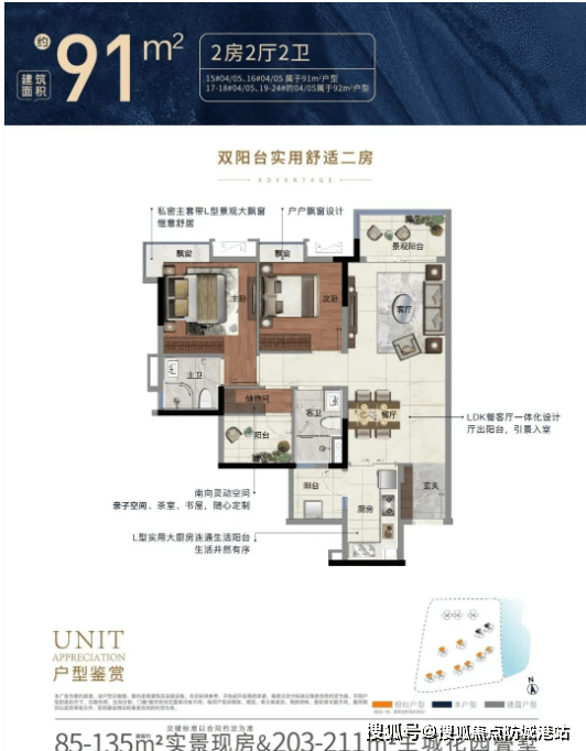 91㎡户型,总价180w - 210w,3房2厅2卫,北向。采用LDK餐客厅一体化设计,增强空间通透感与互动性,动静分区合理减少噪音干扰。双卫设计提升便利性,南向灵动空间可改造。L型厨房操作动线合理,连通生活阳台增加通风采光与储物空间。但部分空间尺度受限,卫生间和厨房空间较小。适合年轻夫妻、新婚家庭、养老及独居群体,能兼顾当下与未来需求变化。售楼处电话: 提供购房咨询的联系方式4008285661