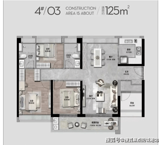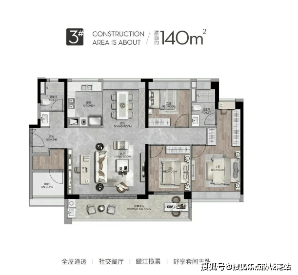 目前项目主推建面约105㎡、125㎡、140㎡三至四房,另有少量250㎡以上大平层产品。所有户型均以南向江景为核心导向,采用LDK一体化、全景落地窗、双阳台等设计,部分楼栋得房率高达95.1%,远超市场平均水平。主力户型如125㎡四房,实现四开间朝南+超大观景阳台,兼顾功能与视野;140㎡奢阔四房则配备独立玄关、主卧套房及双卫设计,提升私密性与舒适度。作为精装现楼(准现房),项目规避了期房交付不确定性,业主可直观感受品质细节,是兼顾自住舒适性与资产保值的理想选择。