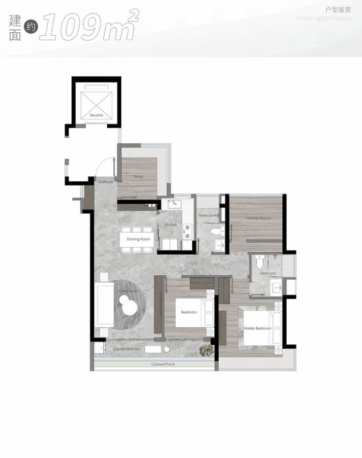 109㎡户型:首推房源南向望一线滨水美景,使用率超85%