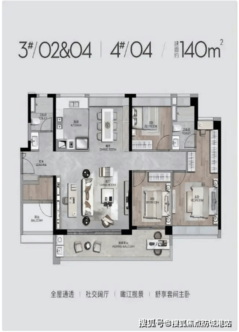 【中国铁建西派澜岸】提供了多种户型选择,面积从105平方米到140平方米不等,适合三至四房家庭居住。所有户型均采用南向一线江景设计,确保每户都能享受到最佳的观景视野。特别是项目占据横沥岛尖「一线头排」稀缺位置,三面环幕江景,为住户带来至尊享受。