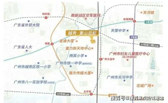 项目位于越秀区广州大道中(老东山板块),一路之隔即是珠江新城,抬头可见东西塔,地理位置堪称 “越秀与天河的黄金衔接点”。交通便捷度拉满:距离地铁 5 号线五羊邨站约 700 米、杨箕站约 900 米,在建 10 号线广州大道中站步行仅 400 米(未来三线换乘),30 分钟内覆盖天河 CBD、北京路商圈;自驾紧邻广州大道中,通过中山一立交快速接驳东风东路、内环路,10 分钟直达珠江新城核心区,无论是珠城白领还是老东山居民,通勤都极为高效。