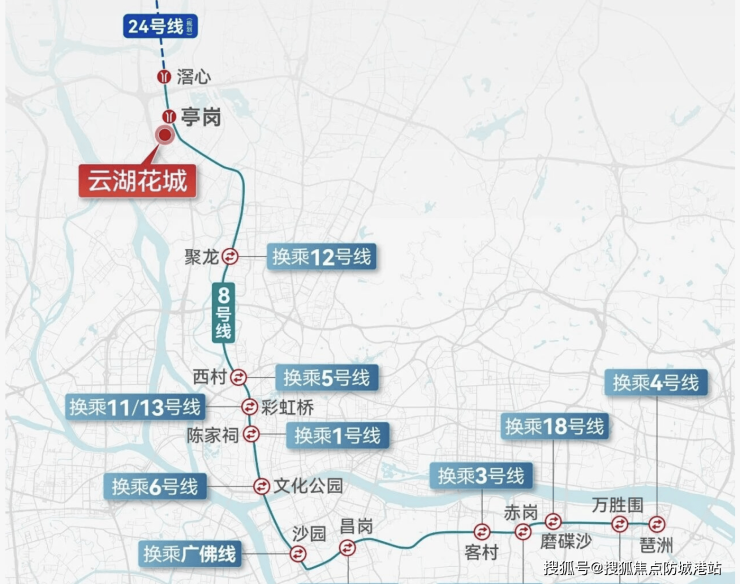 居住在云湖花城的业主,享有的是一种“TOD枢纽+生态湖居”的高效生活。项目距离地铁8号线北延段亭岗站仅约400米,该线路作为广州“换乘之王”,可一线直达荔湾、海珠,并快速换乘广州地铁全网,通勤效率极高。自驾方面,紧邻华南快速、许广高速等城市主动脉,30分钟生活圈覆盖白云新城与珠江新城。