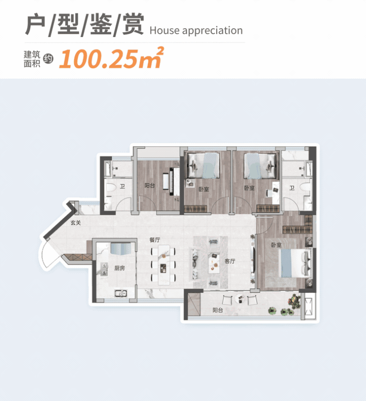 王牌户型【约84-101㎡ 3至4房2厅2卫】