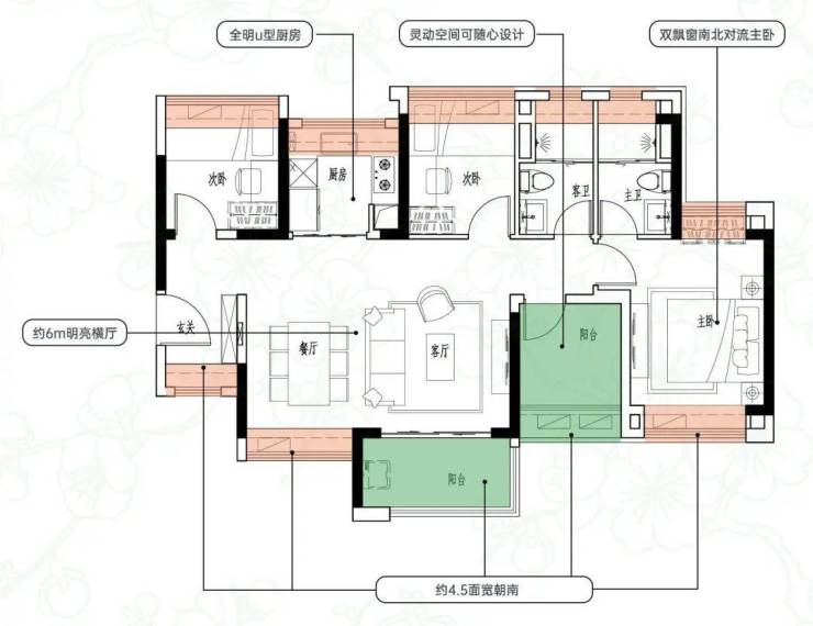 建面约98㎡ | 4房2厅2卫 | 得房率约95%