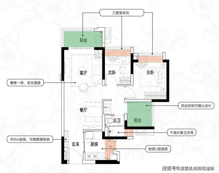 建面约84㎡ | 3房2厅2卫 | 得房率约93.5%