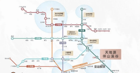 从区位图上看,天地源·伴山溪谷所处位置优势显著。它位于番禺区,周边交通干线与重要区域分布有序。项目距4号线石碁站约600米,属于真正的地铁口物业,通过4号线1站可达大学城,5站能到琶洲;同时临近3号线东延段海傍站(预计2023年底开通),5站可到番禺广场,并可换乘快线18、22号线。此外,还有三纵三横道路网加持,三纵为番禺大道 - 华南快速、广州绕城高速 - 新化快速、南沙港快速;三横是亚运大道、市莲路、广明高速,开车15分钟能到达番禺广场,20分钟抵达大学城,25分钟可至琶洲CBD等中心区。在区域发展方面,67亿南浦村旧改项目由碧桂园操刀,2022年4月旧改签约率已高达99%,土地改造基本平整,且被番禺区政府列入“十四五”时期内更新改造重点项目。旧改规划总建设128万㎡,还配套小学(在建中)、中学(石碁一中)、幼儿园(开发商配建公立幼儿园)等公共服务设施,结合永华产业园,将打造成为广州岭南文化新地标、莲花湾板块首席TOD综合体,区域将发展为集产业、旅游、文化、生态、居住五位一体的复合功能区。