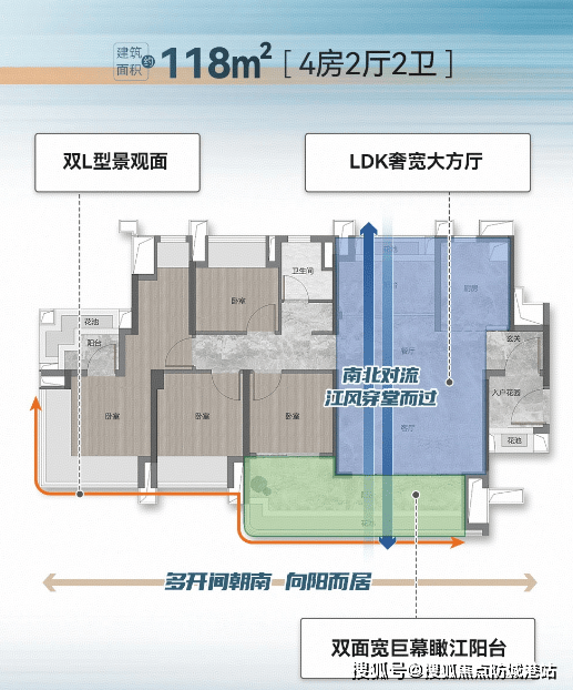 创新的户型设计:采用新规设计,得房率超100%,且户户朝南,最大化利用空间和景观资源。