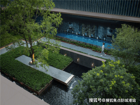 园林中设计了精致的水景,波光粼粼,倒映着蓝天白云,增添了社区的灵动与诗意。