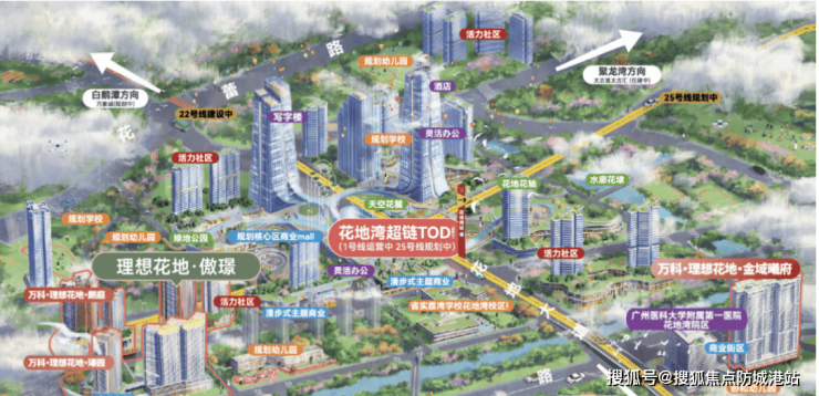 交通便利是万科•理想花地·傲璟的重要优势。项目距地铁1号线花地湾站仅约300-400米,出行便捷,步行即可到达地铁站。未来规划中,25号线的接入将进一步增强区域交通网络,实现多轨交互联通。道路方面,片区内多条城市主干道及快速路贯通,方便通往珠城及广佛肇各核心板块。项目还引入天空花麓系统,通过立体步行廊道串联住宅、商业及地铁站点,实现雨天或高温天气下的舒适出行体验。交通便利不仅提升日常通勤效率,也为物业保值及投资提供了坚实保障。
