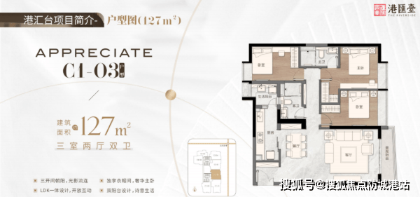 117平方米的三房两厅两卫户型,同样表现出色。阳台与飘台视野广阔,无界风光入室。主卧奢配衣帽间,私藏优雅;双阳台向阳设计,美景与采光兼得。客卫采用三分离设计,井井有序,极大提升了生活的便利性。而127平方米的三房两厅两卫户型,则采用了三开间朝阳设计,采光景观无遮挡。LDK(客餐厨)一体设计,增强了家庭成员之间的互动。大开间设计释放了更大的活动空间,双阳台设计则为生活增添了诗意。