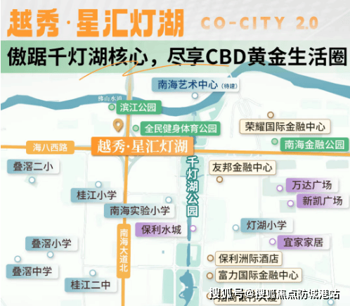 越秀星汇文瀚位于南海平洲,占据佛山中轴地标千灯湖 C 区,生活之跃优势显著。商业上,3km 内汇聚千灯湖与映月湖双中心商业,映月湖环宇城、万达广场等 4 大商圈环绕,满足吃喝玩乐购需求。生态方面,2km 内有映月湖公园等 6 大公园,尽享绿色富氧生活。交通拥三纵三横路网,清风路主干道快速连接佛山一环,通达金融高新区及广州荔湾,未来还有多条规划地铁线,生活便捷度高。售楼处电话: 提供购房咨询的联系方式 400-990-8525 转接 698