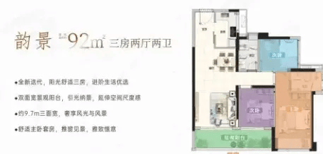 92㎡三房两卫(二期新规户型):北向 240 万起,南向 260 万起,舒适度升级