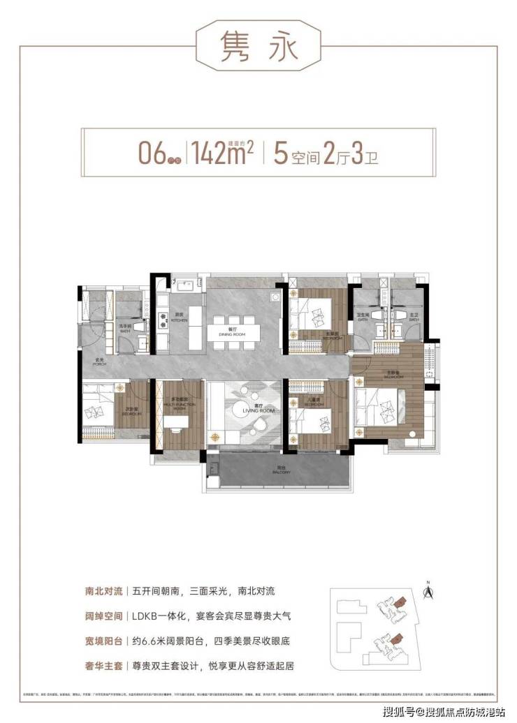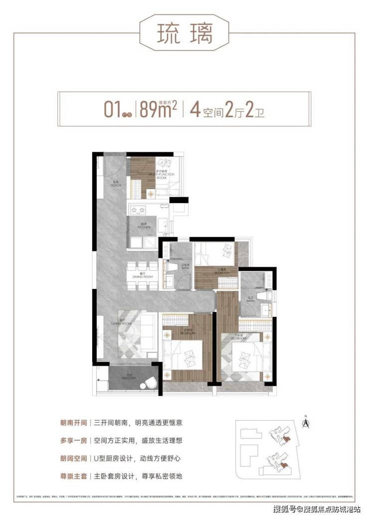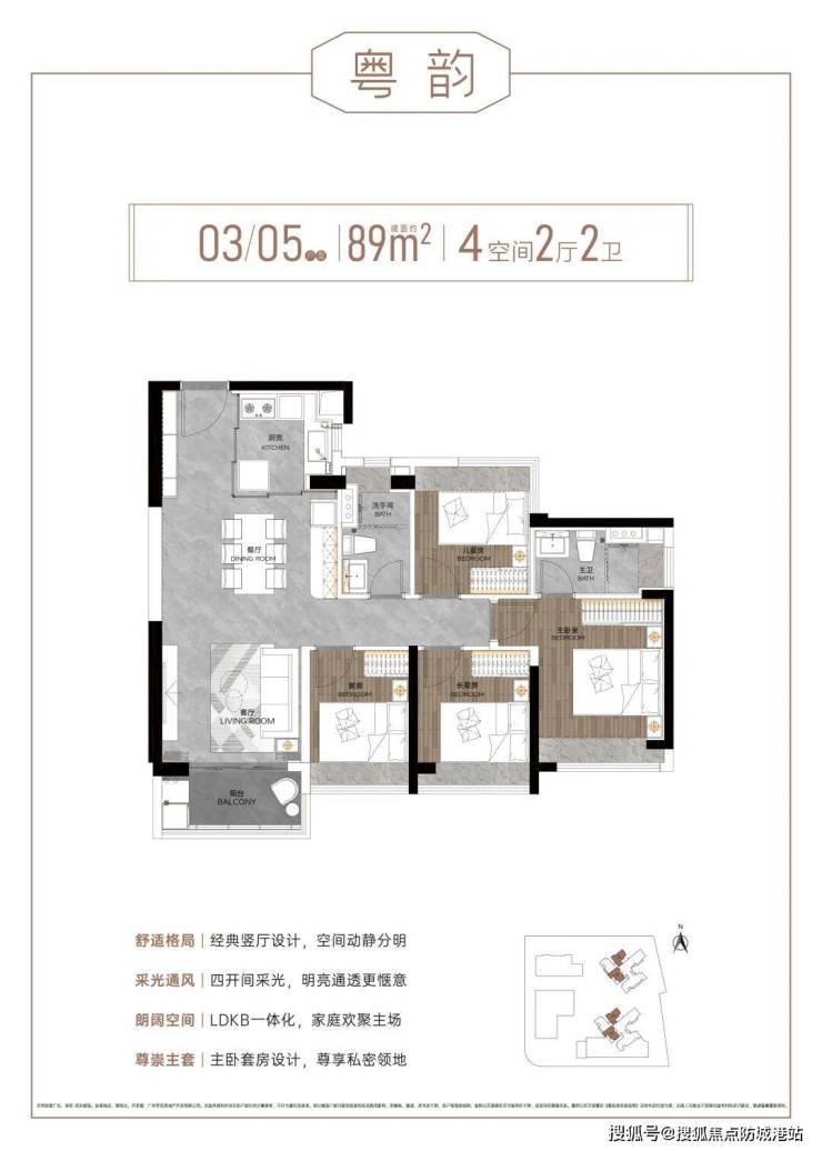 :在售建面约89-142㎡四至五房,使用率约100%,同等面积多一房,适配全生命周期需求;