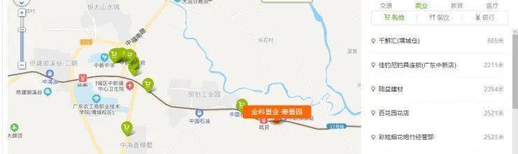 至于其他商业、医疗配套,我们可以看到,离项目最近的医疗配套约在距离2.5公里外的位置,并且较多是社区卫生所。