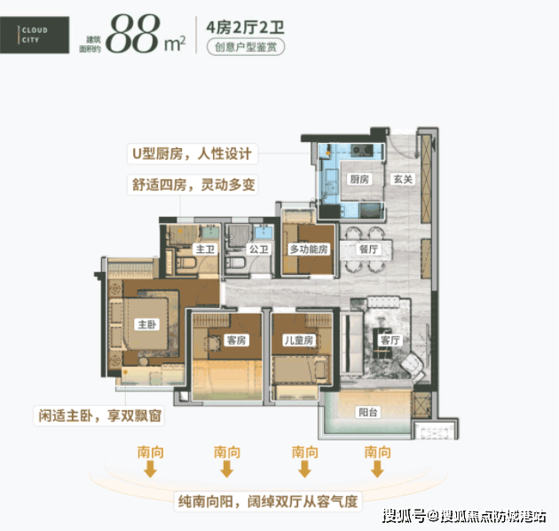 (二)三口之家适配:88㎡四房两厅两卫,总价289万起