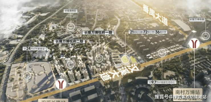 华润置地·长隆万博悦府地处番禺区核心地段,位于长隆旅游度假区与万博商务区之间 ,将这两大优势板块紧密相连 。长隆旅游度假区作为国家5A级景区,每年吸引全球超4000万旅客,拥有丰富的旅游资源与极高的人气。万博商务区则是番禺的经济发展引擎,已聚集超过27000家企业,像海大集团、欢聚集团、虎牙、希音、拼多多、小米互联网、携程等众多互联网行业大咖纷纷在此落户。两大板块原本因城中村阻隔,各自发展。但随着万博官宣扩容,从1.5平方公里拓展至7.2平方公里,覆盖长隆、里仁洞片区,规模超越珠江新城,长隆万博悦府所处区域价值更是直线上升,成为城市发展的黄金节点。周边市政配套成熟,无论是办理各类事务,还是日常购物、就医,都能高效便捷地完成,为居民提供了极大的生活便利。