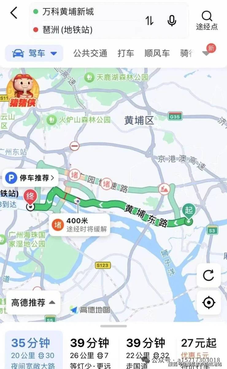 到琶洲:全程 20 公里,耗时 35 分钟,打车约 27 元