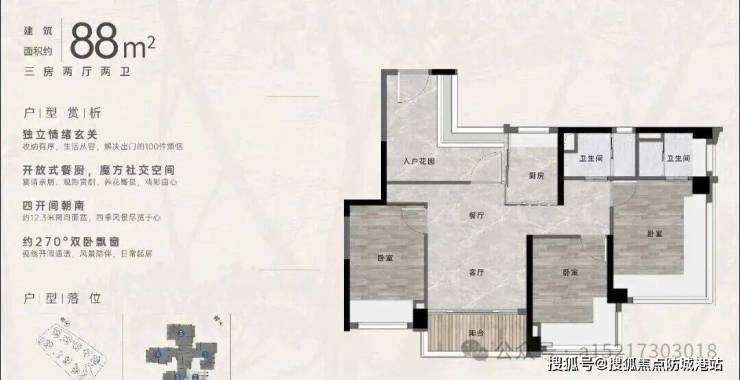 2. 抢手 88㎡三房(四开间朝南)