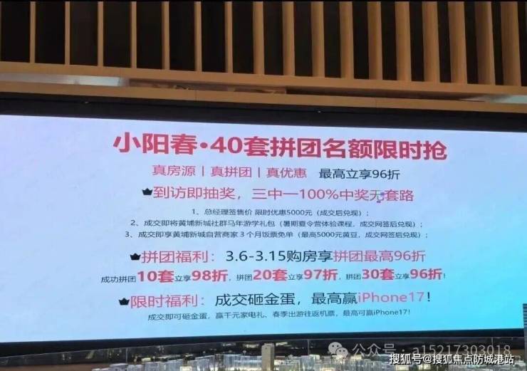 A15:万科黄埔新城推出拼团优惠活动,3.6-3.15 购房拼团最高享 96 折,同时有总经理特批 5000 元优惠,成交砸金蛋赢 iPhone17、家电礼等豪礼,100% 中奖。