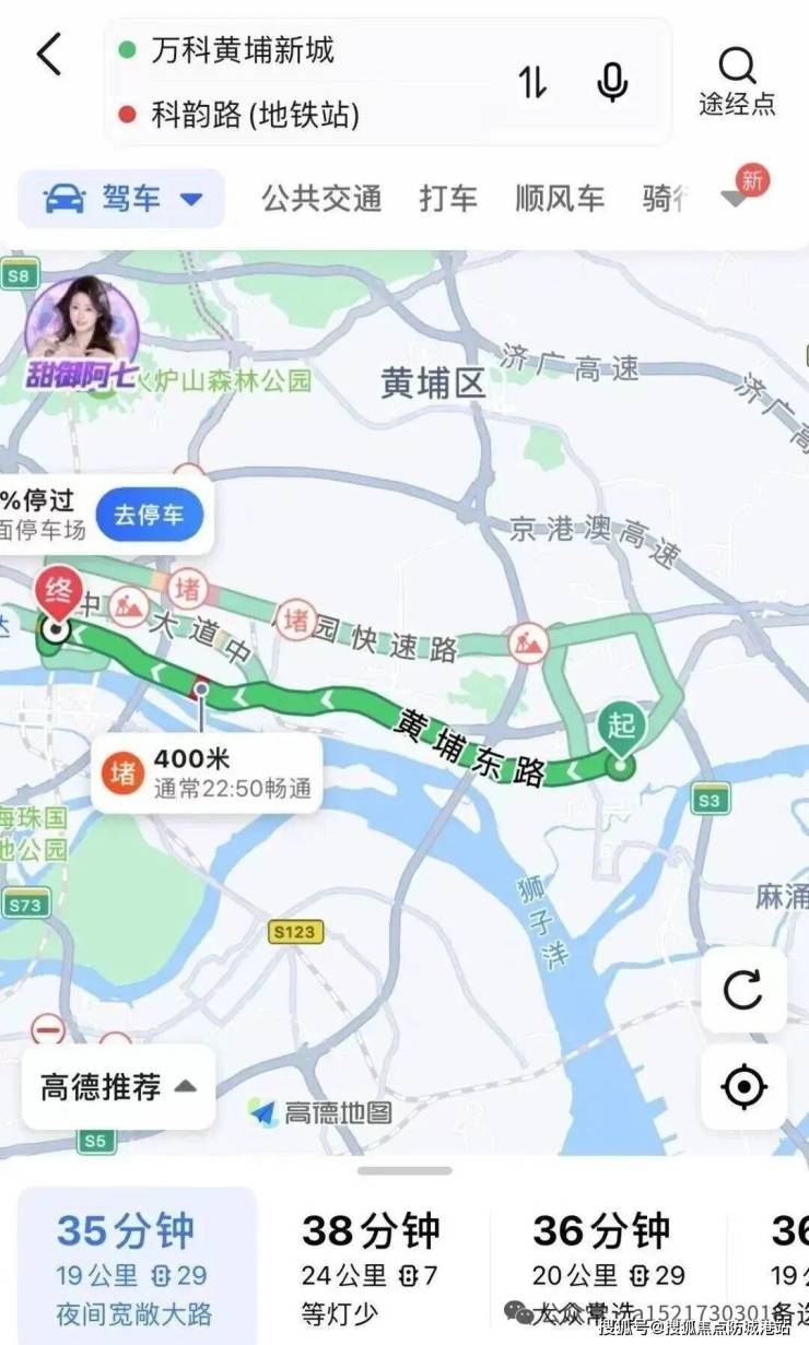 到黄埔港:全程 10 公里,耗时 15 分钟,打车约 15 元