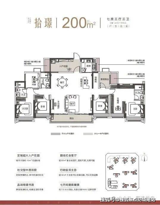 超大入户花园/超53㎡宽厅/中西双厨搭配行政级双主卧/七开间朝南/格调书房