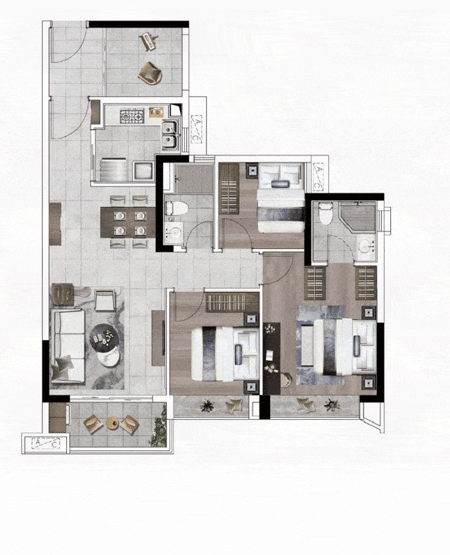 其三,户型设计贴合当下置业群体的居住需求,既做到了高实用率也不牺牲舒适度,同时丰富的户型也可让不同家庭找到合适的居所。