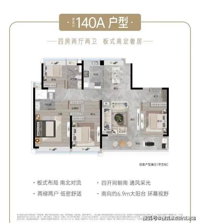 建面约140a㎡高定四房-景观视野佳,性价比至高· 少有高层景观,视野更开阔· 板式布局,南北对流阳光满格· 全屋精装,酒店式星级居所享受