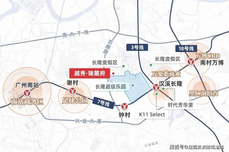 项目紧挨长隆动物世界的西南侧,西侧靠近钟顺路,距离万博CBD大概5公里左右,开车10分钟左右可以抵达。这么看来可以说左拥长隆,右抱万博,享受左右逢源的利好辐射。