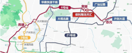 项目距离地铁6号线黄陂站仅400米,步行即可到达,通过地铁网络可快速抵达天河、珠江新城等核心商圈。自驾出行方面,家门口即是广汕公路,方便快捷地通往金融城、琶洲等地。具体而言,前往金融城全程约16公里耗时35分钟,至珠江新城全程约21公里耗时41分钟,去往琶洲也仅需约16公里耗时36分钟。