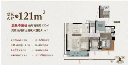 先来看121㎡轻奢四房,这款户型堪称“空间魔术手”,LDK一体化改造空间接近50㎡,让121㎡的面积轻松享有更大的居住尺度。北滘独有的“可房可厅”改造空间,既可以打造为独立书房,也能拓展为家庭活动区,适配办公、育儿、休闲等不同场景。双对流生活阳台保证室内通风采光,玄关首创的步入式储藏室,彻底解决家庭收纳痛点,让轻奢生活井然有序。这款户型总价友好,是年轻改善群体入驻北滘新城核心的高性价比之选。