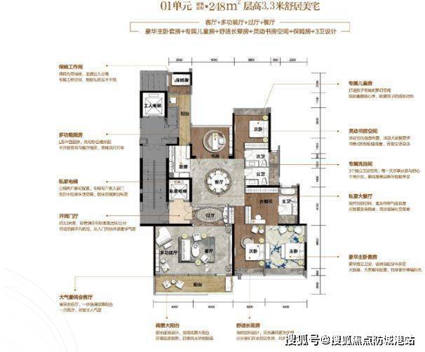 建面约 248 - 315㎡的大尺度空间,使得客厅、餐厅等公共区域显得格外开阔,无论是家庭聚会还是宴请宾客,都能轻松应对,彰显出大气与尊贵。挑空 6.9 米的设计更是为空间增添了一份宏伟与壮观,让居住者仿佛置身于豪华宫殿之中,感受到非同凡响的居住体验。