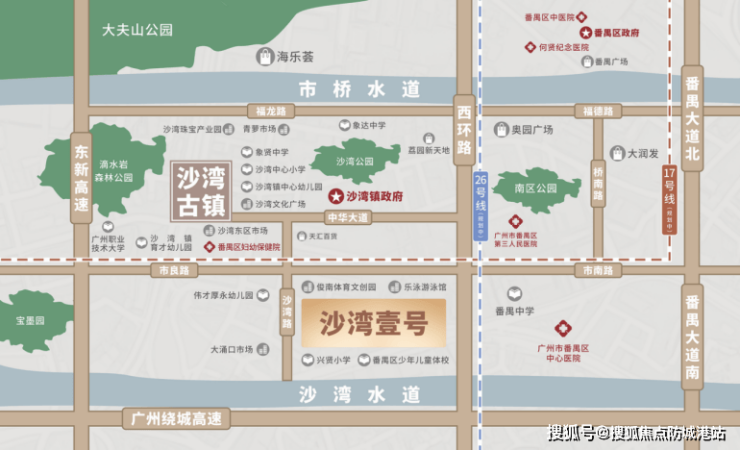 嘉业·沙湾壹号地处沙湾板块 地理位置优越 紧邻市良路与西环路双主干道 交通出行便利 周边商业氛围浓厚 荔园新天地、奥园广场等繁华商圈近在咫尺 满足居民日常购物、休闲需求 教育资源覆盖全龄段 医疗配套有番禺中心医院 为居民健康提供保障 虽然目前不通地铁 但未来规划中的17/26号线若建成 将直通广州核心区域 进一步提升其地段价值