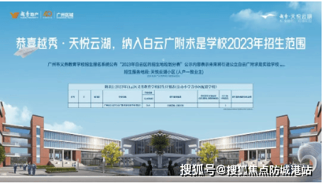 项目已被划入广州市白云区白云广附云湖实验学校(九年一贯制)学区内,该校由广州市知名教育品牌金广附管理,师资力量雄厚,提供从幼儿园到初中的优质教育服务。