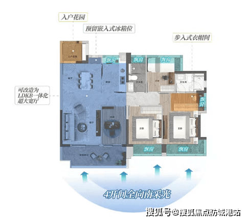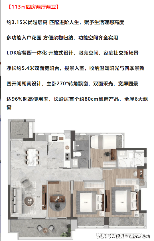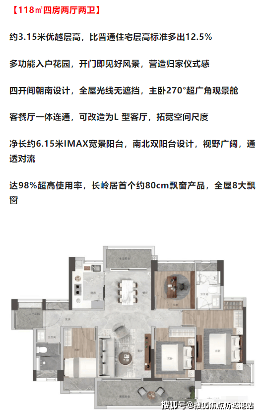 高使用率:通过创新设计实现了接近100%的使用率,特别是扩大了飘窗宽度至80厘米,提升了空间利用率。