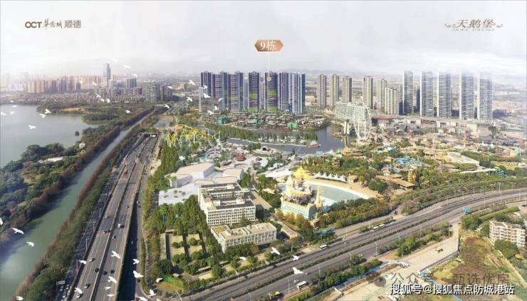 【云鹭片区 约560万㎡原生态湿地公园】横跨大良、伦教两大镇街,围绕鹭鸟、水系、湿地等城市稀有资源,打造湾区独一无二的生态秘境,建设高品质云鹭湿地公园;吸聚数字经济新型产业,打造顺德转型发展新引擎,是顺德未来十年最具想象空间的城市板块。 未来,天鹅堡二期,将依托云鹭片区先进发展规划及顺德华侨城自持高端物业,打造“商旅文住产”未来城市主场,刷新理想人居标准。