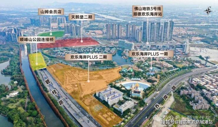【海陆空交通引擎 纵横湾区生活圈】 3号线地铁上盖: 距离佛山地铁3号线欢乐海岸站仅约百余米(首发段顺德学院站-镇安站已正式 通车),广佛同城,便捷出行 湾区1H生活圈:· 广州轻轨顺德站:快速畅达广州、中山、珠海、江门,广州地铁17号线(规划中)或将与城轨相接(信息来源:顺德发布公众号) · 广珠西线高速:快速连接广明高速,直达粤西的高明、肇庆、云浮;接驳化·龙立交畅达深莞穗· 海路交通:项目附近顺德港,坐船2小时直达香港· 主干道:碧桂路畅达全城