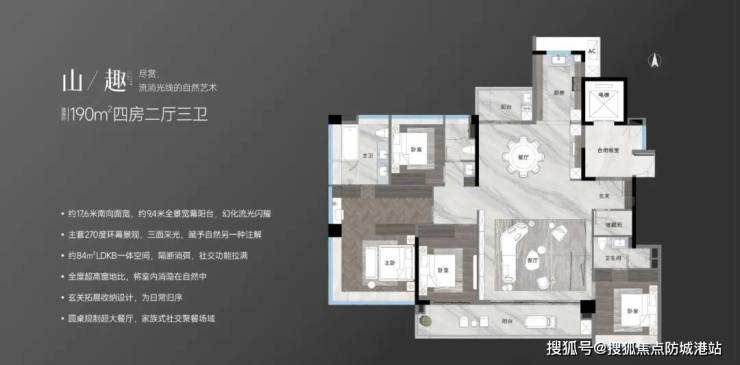 户型:建面约105-180㎡三至五房,全南向设计,得房率超90%